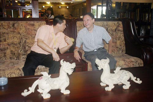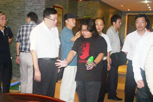 北京林作新教授 友聯(lián)戴國總経理在參觀中親切交談(上圖)