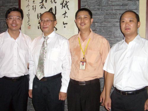 大涌鎮(zhèn)文衛(wèi)戈鎮(zhèn)長 中家協(xié)陳付理亊長 吳赤宇總經(jīng)理 彭付鎮(zhèn)長 在參觀中合照留念(上圖)