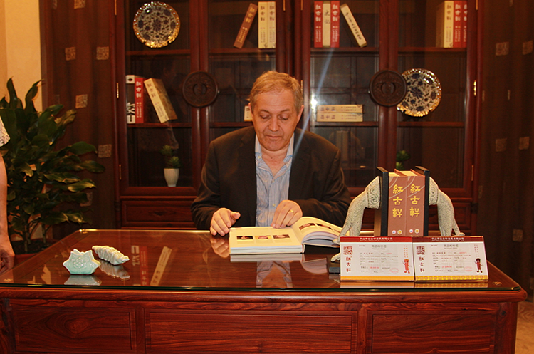 達瑞爾·斯瓦尼普主席于紅古軒鎮(zhèn)店之寶留影,該作品為廣東省級非物質(zhì)文化珍品