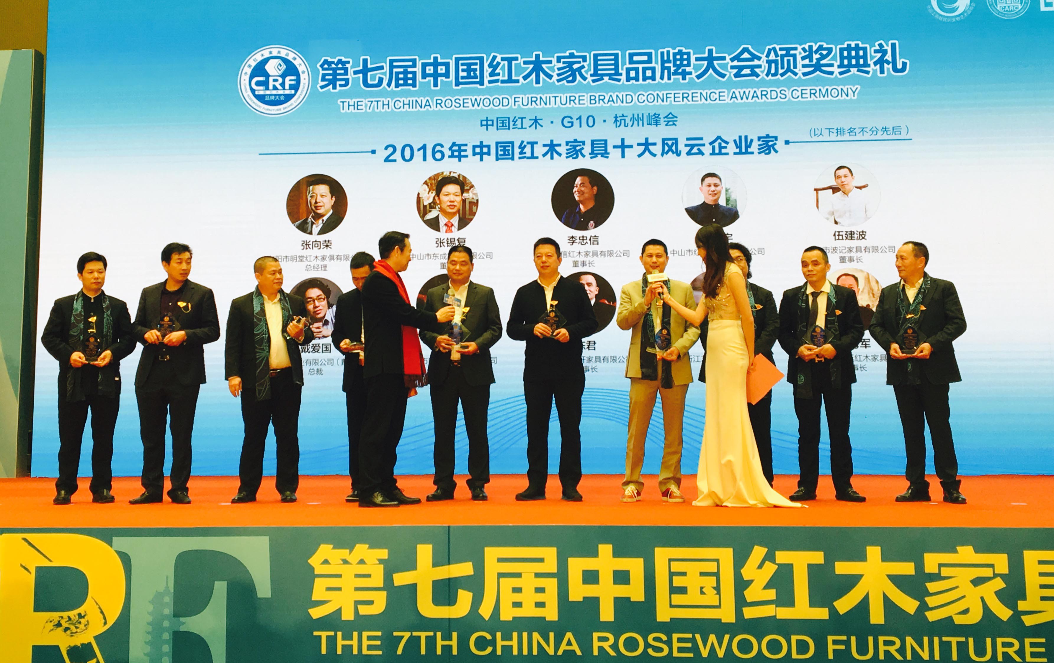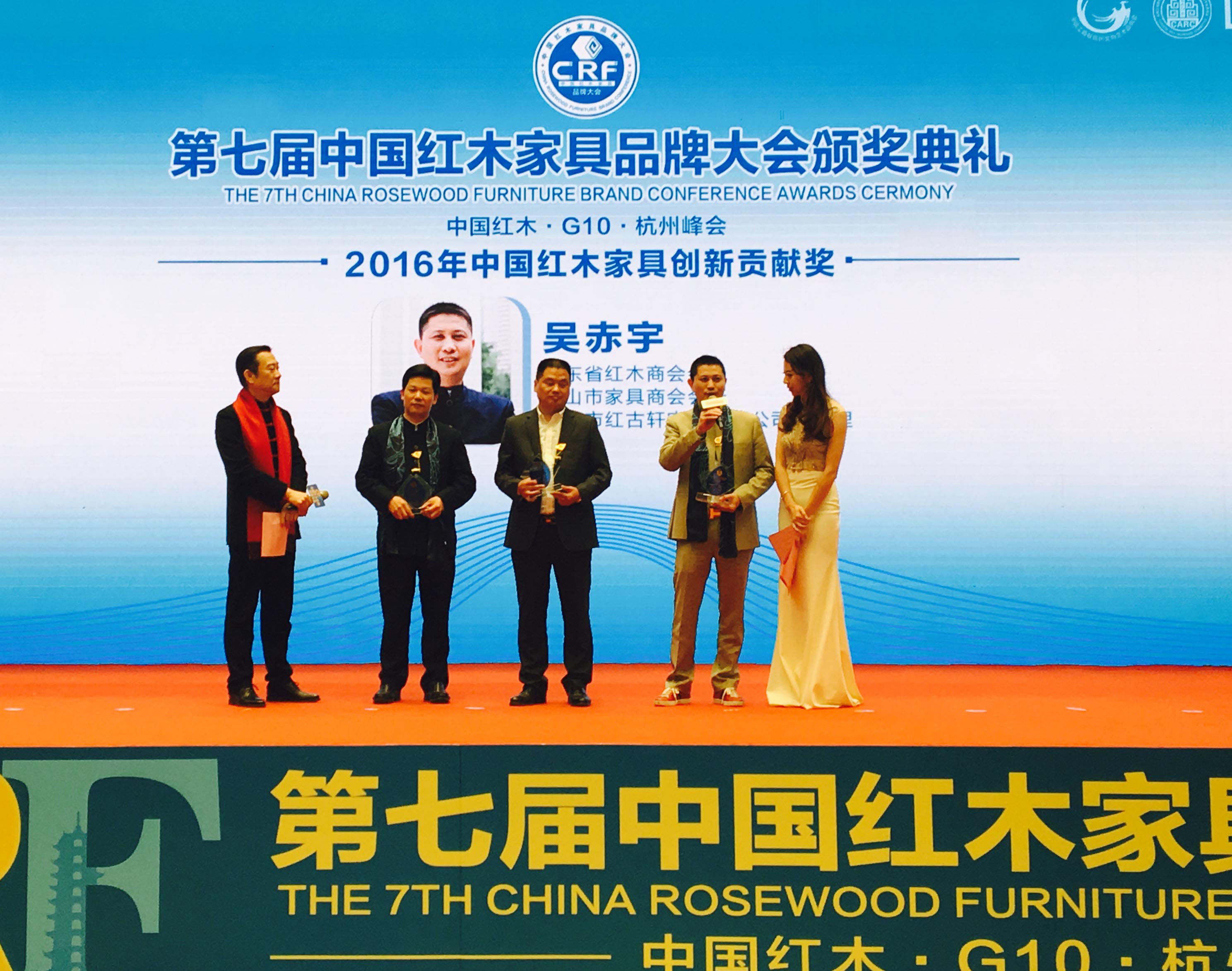 于此同時,紅古軒總經(jīng)理吳赤宇先生,以對行業(yè)的創(chuàng)新引領(lǐng)與卓越貢獻,斬獲“2016中國紅木家具創(chuàng)新貢獻獎”、“2016年度中國紅木家具十大風(fēng)云企業(yè)家”!紅古軒營銷總監(jiān)楊晶女士,更以獨特的個人魅力和影響力,斬獲“2016年中國紅木家具杰出職業(yè)經(jīng)理人”!