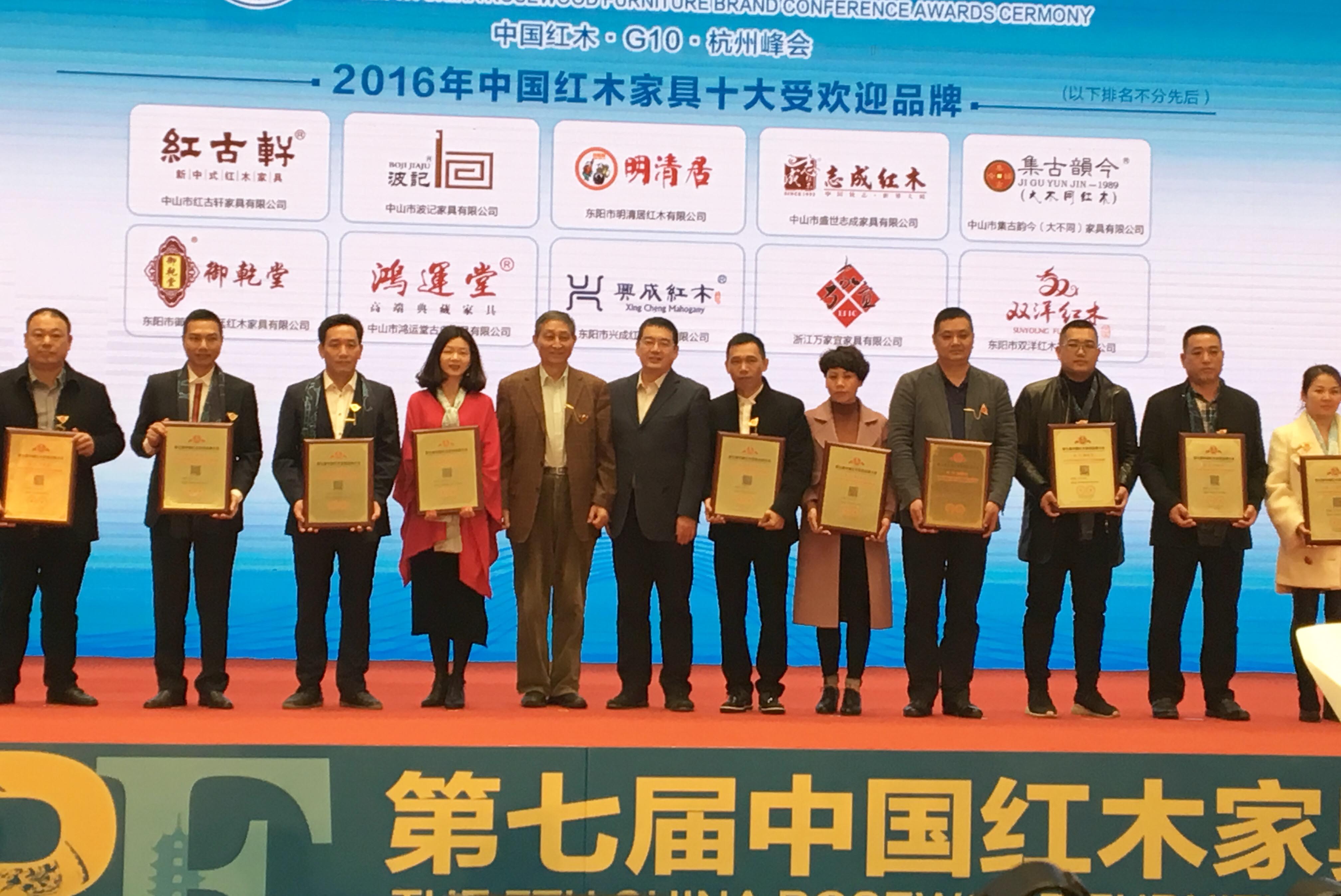 2017年1月4日,紅木盛事,第七屆中國紅木家具品牌大會,在G20峰會舉辦地——杭州國際博覽中心召開,大會在盤點2016年行業(yè)變化與成就的同時,共同探討經(jīng)濟全球化下的紅木新未來。同期,被譽為紅木奧斯卡的“中國紅木家具行業(yè)總評榜”,在經(jīng)過超1000萬人次關(guān)注、近600萬激烈投票之后,頒獎大典隆重舉行。