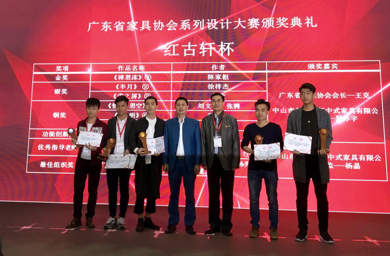 大賽由廣東省家具協(xié)會主辦,紅古軒承辦。頒獎典禮上,廣東省家具協(xié)會會長王克先生、紅古軒總經(jīng)理吳赤宇先生,共同為來自全國各地的獲獎選手,及最佳組織獎、最佳指導老師進行了現(xiàn)場頒獎。