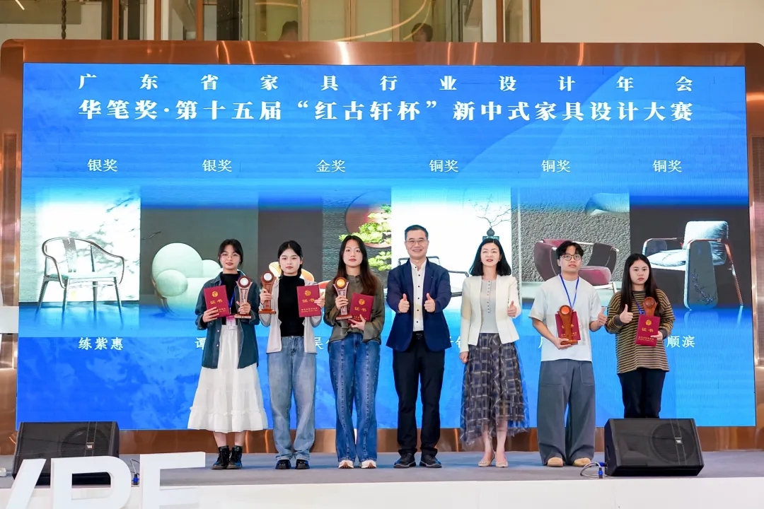 隨后,激動人心的第十五屆“紅古軒杯”新中式家具設(shè)計(jì)大賽頒獎典禮隆重舉行,廣東省家具協(xié)會會長王克、執(zhí)行會長兼秘書長張承志、紅古軒營銷總監(jiān)楊晶,共同為來自全國各地的獲獎選手頒獎。